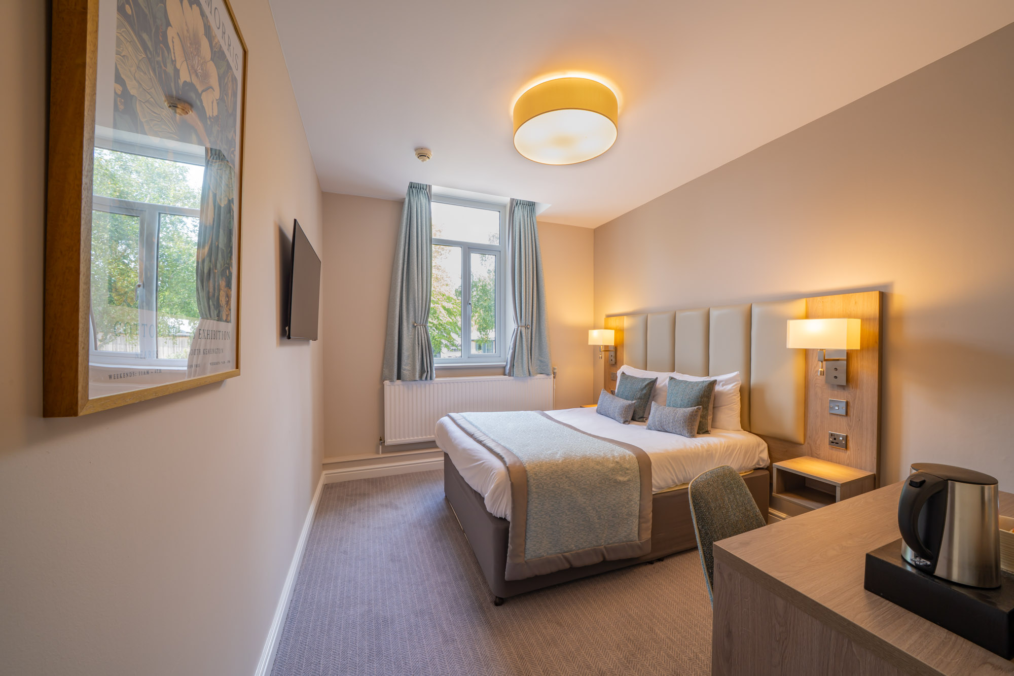 Experience the comfort of our Double Executive Room, showcasing a luxurious King size bed and captivating vistas of the serene Warwickshire countryside.